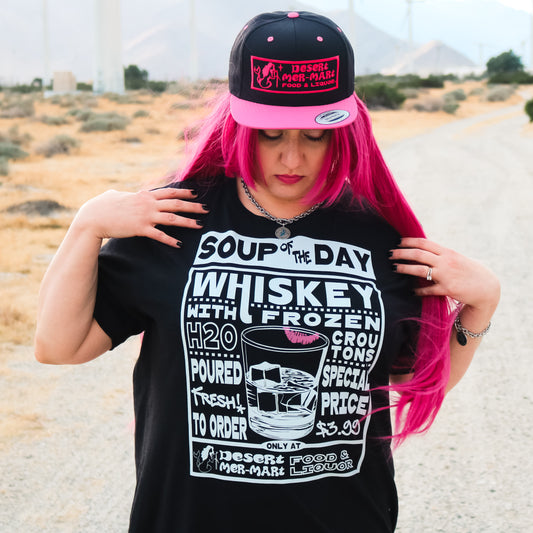 Desert Mer-Mart Food and Liquor Black and Pink Snapback Hat