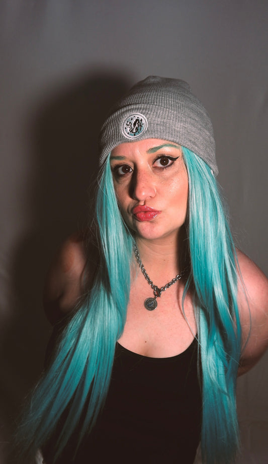 Desert Mermaid Grey Cuffed Beanie with Blue Ombre Logo